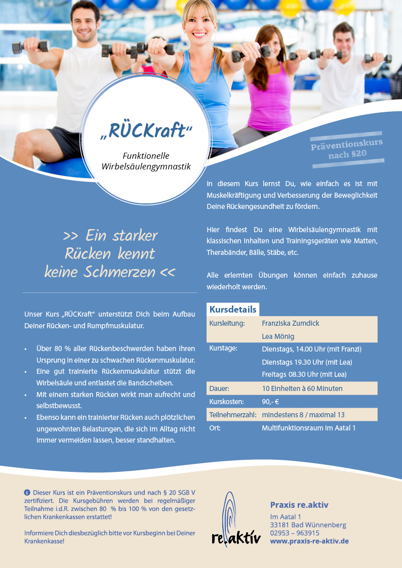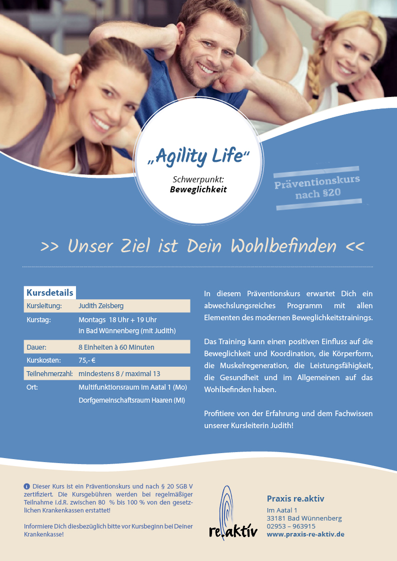 Wir weisen Sie darauf hin, dass unsere Kurse gut besucht sind und wir die neuen Interessenten häufig erst mit unserer Warteliste vertrösten müssen. Das bedeutet, dass die aktuellen Kursteilnehmer immer ein Vorteilsrecht für den nächsten Kurs haben. Bei frei gewordenen Kursplätzen werden die Interessenten der Warteliste von uns telefonisch über den nächsten Starttermin benachrichtigt. Dann können sie noch entscheiden, ob sie am Kurs teilnehmen möchten.